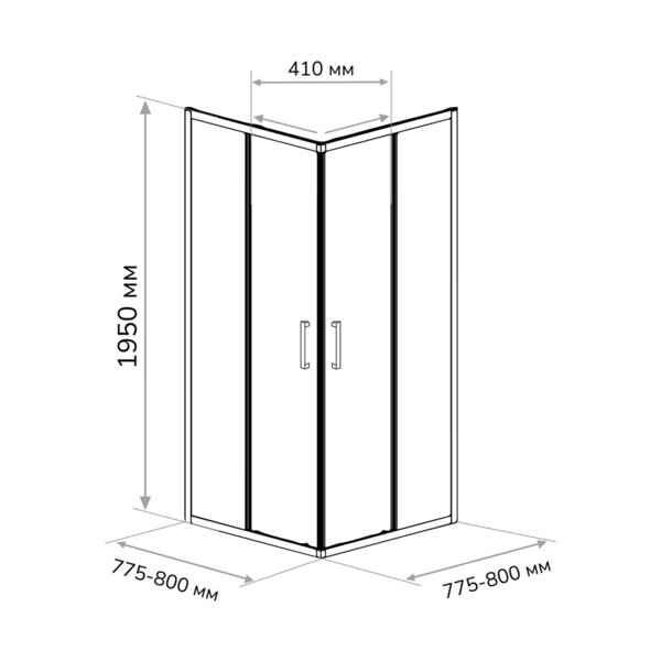 Душевой уголок предназначен для оборудования ванных комнат. Закаленное прозрачное стекло 6 мм – травмобезопасно, выдерживает высокие перепады температур и устойчиво к механическому воздействию. Профиль 38 мм из анодированного алюминия. Регулировка профилей позволяет компенсировать неровности стен на 25 мм в меньшую сторону с каждой стороны (775-800х775-800 мм). Ролики с металлическим корпусом обеспечивают плавность хода двери и рассчитаны минимум на 30 000 циклов открывания. В комплект входят уплотнители из ПВХ, защищающие от брызг. Благодаря магнитному замку, створки герметично закрываются. Анодированное покрытие устойчиво к потускнению, отслаиванию и выцветанию. Поддон в комплект не входит. Возможна установка как на поддон, так и на пол.