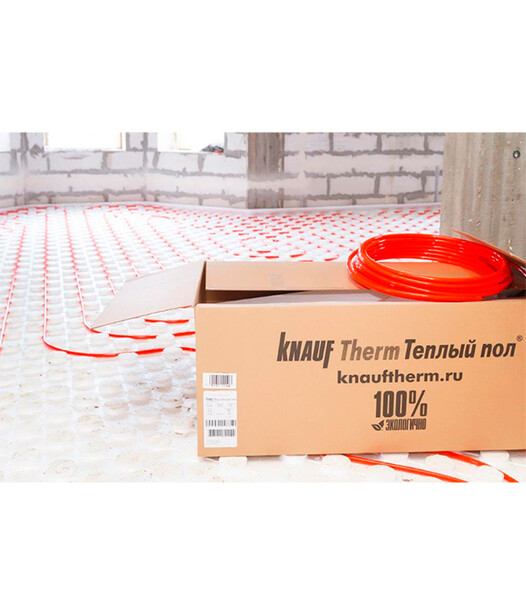 Влагостойкие теплоизоляционные плиты KNAUF Therm® для обустройства теплого водяного пола. Позволяют выполнить устройство теплого пола со стяжкой и без, с применением теплораспределительных пластин. Не требуют применения сетки, хомутов и скоб. Значительно сокращают время монтажа теплого пола. Бобышки на плитах плотно фиксируют трубы 16-20 диаметра без дополнительных креплений. Толщина с учетом бобышек – 47 мм (основание – 25 мм, бобышки – 22 мм). Шаг бобышек – 100 мм. Укладка труб теплого пола с шагом 100 и 200 мм.