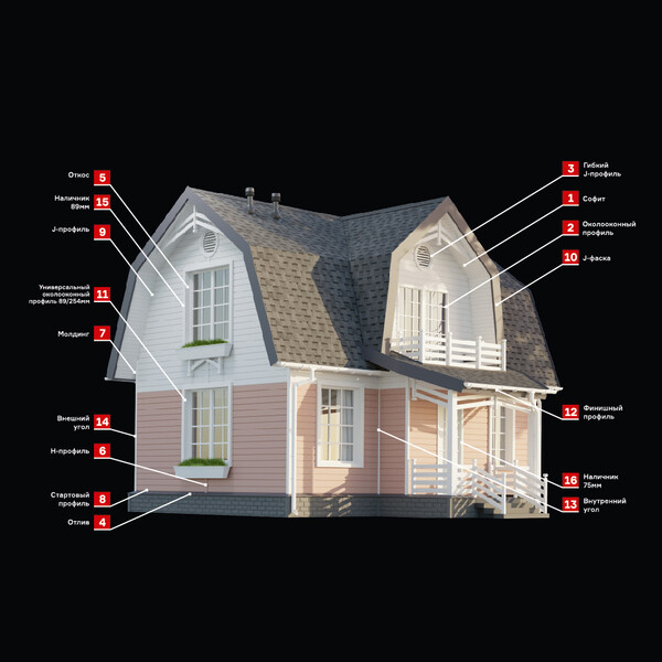 Используется для закрытия концов рядовых панелей на внешних углах дома, а также применяется для декоративной отделки.
