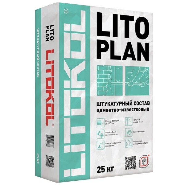 Штукатурная смесь LITOPLAN на цементно-известковой основе, предназначенная для ручного и механизированного выравнивания стен и потолков, внутри помещений и снаружи, слоем от 3 до 40 мм за одно нанесение, под последующую окраску, оклейку обоями, облицовку плиткой. Рекомендуется для оштукатуривания фасадов и помещений с любой степенью влажности.