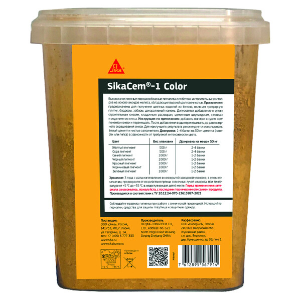 Пигменты предназначены для окрашивания бетона или строительных растворов в своей массе. Введение красящих пигментов в бетон дает возможность получить особенный декоративный эффект. На больших площадях применение окрашенного бетона позволяет сэкономить средства на последующую трудоёмкую окраску или облицовку поверхности. Цветные бетоны по качеству не уступают обычным, к тому же имеют декоративные свойства. Пигменты SikaCem®-1 Color не токсичны, не выцветают со временем и являются экологически безопасными для человека и окружающей среды.