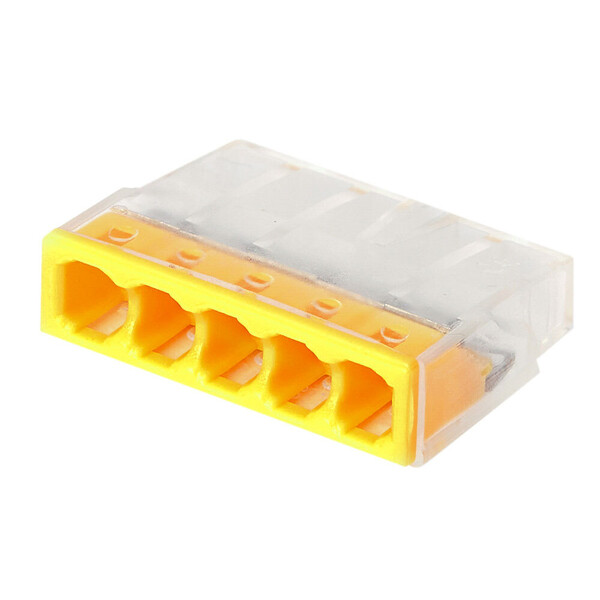 Предназначена для подключения до 5-ти медных проводников сечением от 0,5 до 2,5 мм?. Имеет прозрачный корпус для облегчения контроля присоединения проводника. Поставляется в блистере с вложенностью 20 шт.