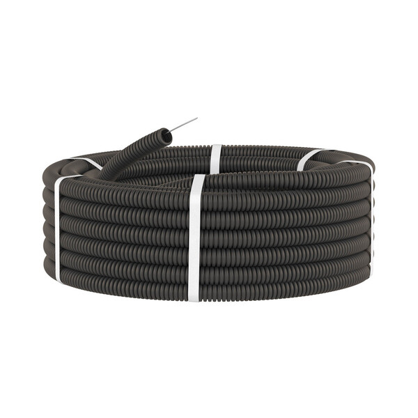 Гибкая гофрированная труба легкой серии предназначена для прокладки в ней кабелей – электрических, телевизионных, компьютерных. Она имеет небольшой вес и проволочную протяжку, которая делает прокладку кабеля в трубе проще. Гибкие гофрированные трубы легкой серии укладываются в штробы стен, стяжку полов (при этом их надо размещать на несгораемых основаниях), а также используются в монолитном бетоностроении. Труба влагоустойчива и обеспечивает степень пыле – и влагозащиты до IP 55 (при использовании специальных аксессуаров). Диаметр – 16 мм. Цвет – черный. Материал – полиэтилен низкого давления (ПНД). Легкие гибкие гофрированные трубы имеют широкий диапазон температур монтажа и эксплуатации: – от -40 °С до +90 °С. Длина – 100 метров.