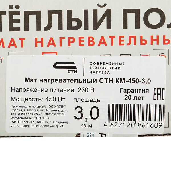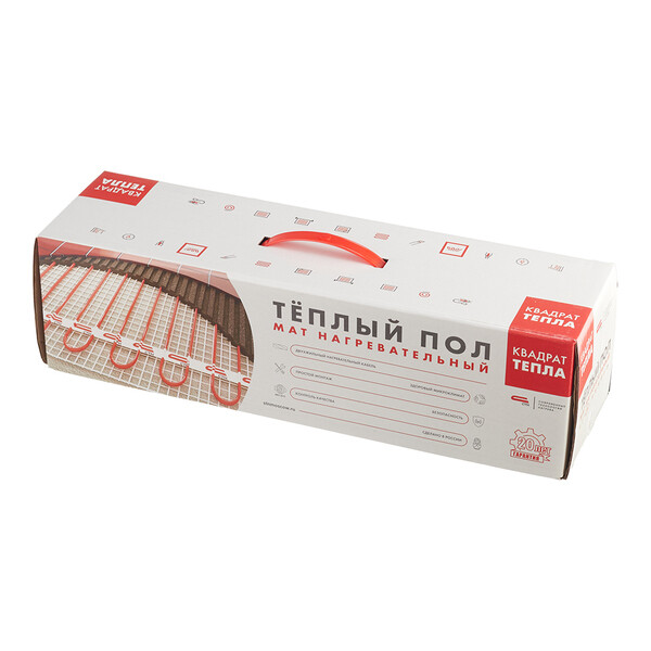 Электрические системы обогрева пола на основе двухжильного резистивного кабеля являются готовым решением для обеспечения дополнительного обогрева помещения. Регулировка температуры в помещении производится терморегулятором, который подключается к системе теплого пола. Теплый пол нагревательный мат Квадрат тепла защищен от механических повреждений и произведен согласно ГОСТу, что позволяет заявлять долговременную эксплуатацию сроком 50 лет.