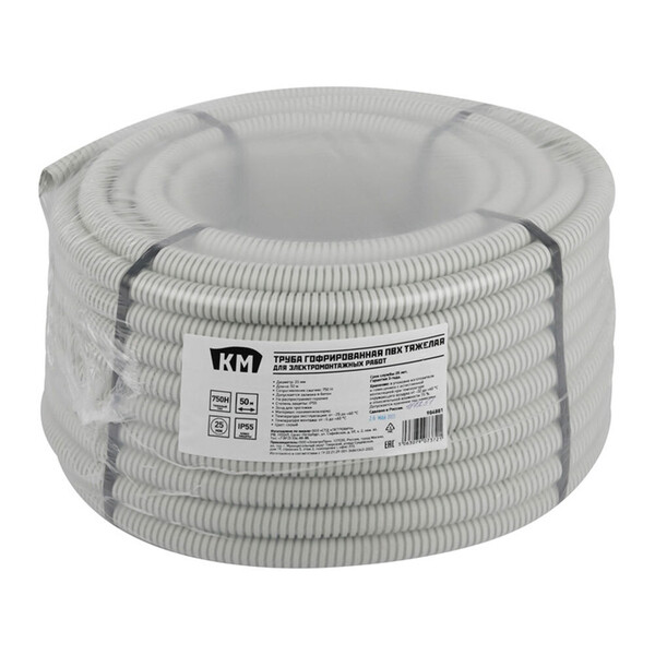 Надёжное решение для прокладки электрических коммуникаций скрытого типа: стенные штробы, пустоты фальш-потолков и фальш-стен, пространство под фальш-полами. Тяжёлые гофрированные трубы КМ из ПВХ защищают силовые, слаботочные провода и кабели от негативного воздействия окружающей среды, механических повреждений. Высокие эксплуатационные характеристики позволяют применять ПВХ-гофротрубы КМ тяжёлого типа при прокладке сложных систем и трасс. Гофрированные ПВХ-трубы КМ изготовлены из невоспламеняющихся материалов, не поддерживающих горение. Отличаются высокой ударной прочностью: 750Н. Широко применяются с электрическими, компьютерными и телефонными кабелями. Надёжное решение при строительстве, реконструкции и ремонте самых разных объектов – жилых домов, офисных зданий, промышленных и складских сооружений.