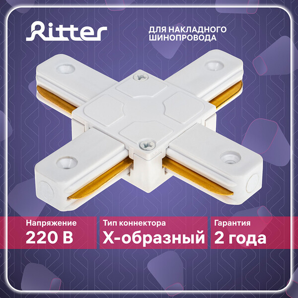 Х-образный коннектор соединитель однофазного шинопровода Ritter Artline предназначен для соединения четырех шин в крестообразный элемент. Коннектор является неотъемлемой частью трековой системы освещения, он подключает две или несколько шин, создавая цепь питания для трековых светильников. Функциональной особенностью трековой системы освещения является возможность передвижения световой точки по линии шины. Это позволяет корректировать насыщенность света в разных частях комнаты в зависимости от интерьерных требований. Чтобы удлинить или сменить направление шины используется коннектор – соединитель шинопровода.