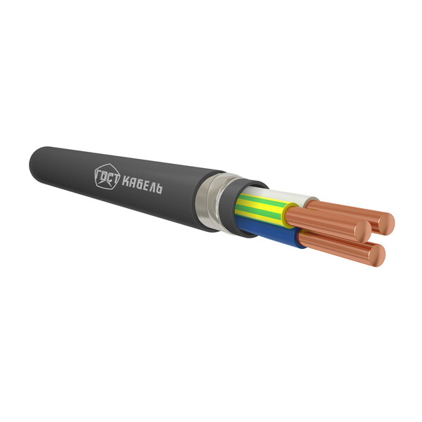 Кабель с медными жилами, с изоляцией из ПВХ пластиката, бронированный стальными лентами с защитным шлангом из ПВХ пластиката, не распространяющий горение по категории А с низким дымо – и газовыделением.