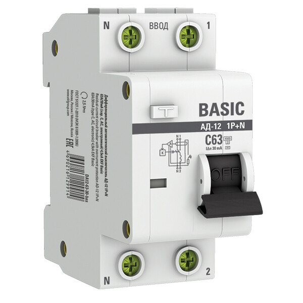 Предназначен для совмещения функции автоматического выключателя с устройством защитного отключения (УЗО). При обнаружении автоматическим выключателем в защищаемом участке сети тока утечки (повреждения) на землю или сверхтока (тока перегрузки или короткого замыкания) происходит срабатывание устройства, приводящее к отключению защищаемой сети.