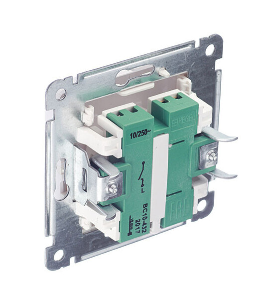 Предназначен для размыкания и замыкания цепи питания. Клавиша после срабатывания возвращается автоматически в исходное положение. Индикация исключает мерцание выключенных ЭСЛ и светодиодных ламп. Устанавливается вместе с рамкой