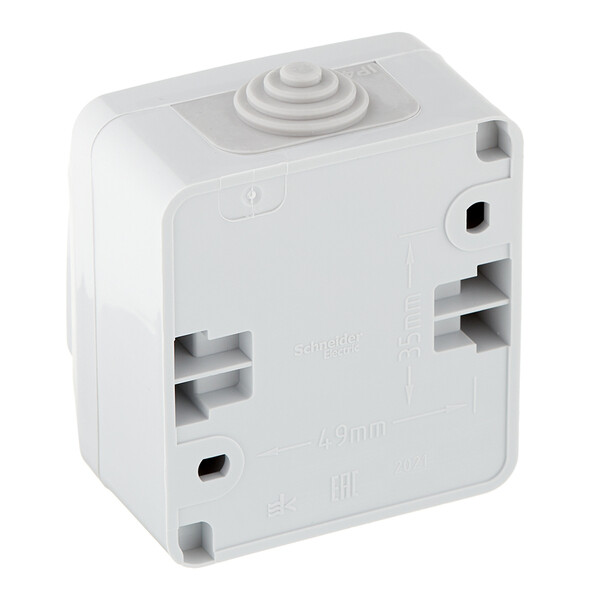 Предназначен для включения и выключения света при внешней проводке и имеет степень защиты от влаги IP44, которая позволяет устанавливать выключатель на улице или в бане.
