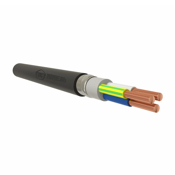 Кабель с медными жилами, с изоляцией из ПВХ пластиката, бронированный стальными лентами с защитным шлангом из ПВХ пластиката, не распространяющий горение по категории А с низким дымо – и газовыделением.