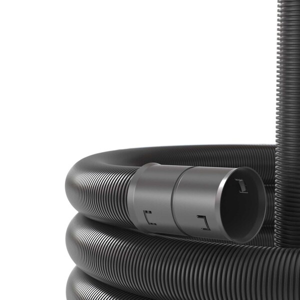 Двустенные гибкие электротехнические трубы могут использоваться как для прокладки кабеля, так и для организации ливневой организации. В первом случае удобнее использовать трубы с протяжкой – она позволяет легко проложить кабель во внутреннем пространстве трубы. Труба имеет высокую кольцевую жесткость. Диаметр 110 мм, поставляется бухтами по 50 метров. Материал – ПНД.