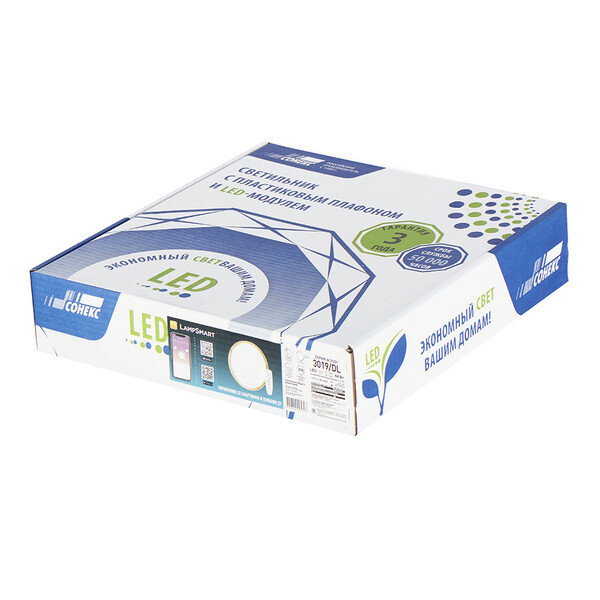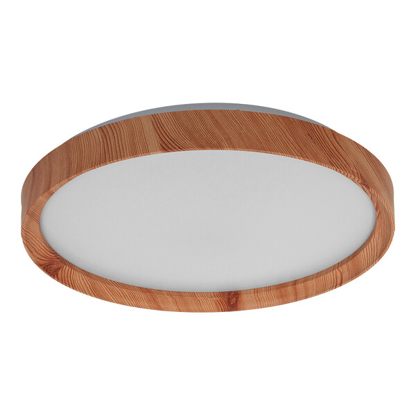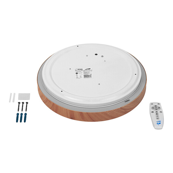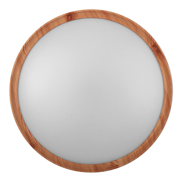 Предназначен для освещения как жилых помещений, так и холлов, коридоров, балконов, лоджий. Светильник состоит из металлического основания (базы) и пластикового рассеивателя. Материал рассеивателя – высококачественный акрил белого цвета с матовой поверхностью, обеспечивающий светильнику равномерное рассеивание и хорошее светопропускание. Форма плафона: круглая, декорирована рамкой цвета "светлый орех". Степень защиты IP43 позволяет использовать светильник в определенных зонах влажных помещений. Светильником можно управлять с помощью мобильного приложения LampSmart и пульта управления.