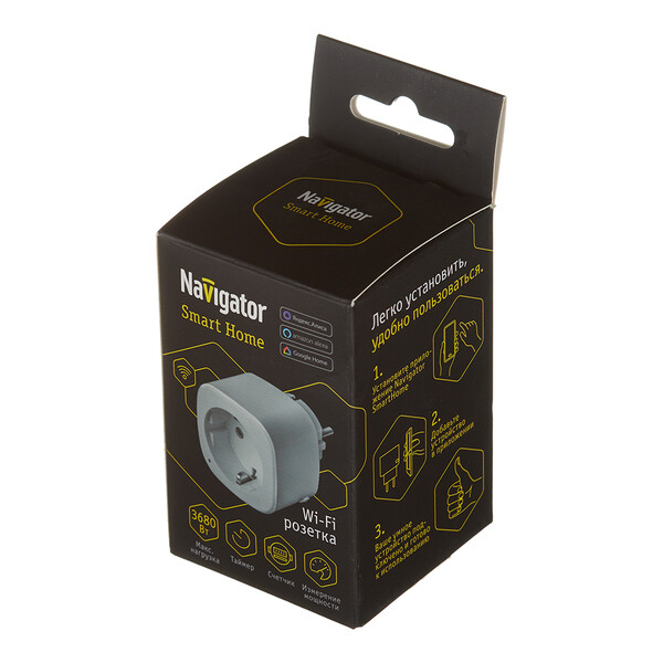 Розетка Wi-Fi Navigator позволяет с легкостью контролировать светильники и другие домашние электроприборы через сеть интернет, посредством мобильного приложения Navigator SmartHome.