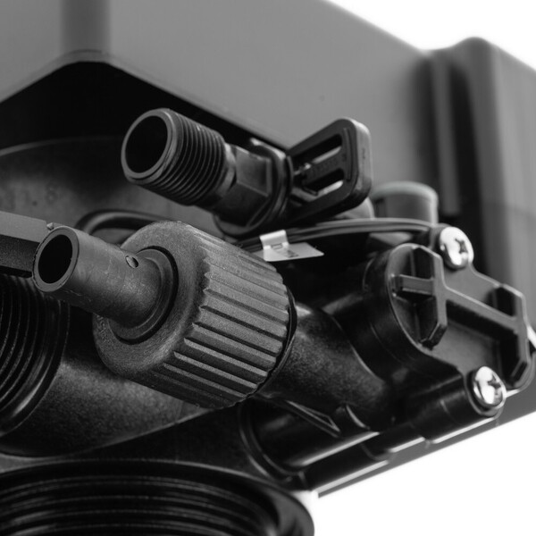Блок управления автоматический по объему отфильтрованной воды реагентный для умягчителей. Предназначен для коммутации потоков воды внутри корпуса скорого фильтра с зернистой загрузкой. Данная модель – реагентная, позволяет осуществлять переключение между следующими режимами: – Фильтрация; – Обратная промывка загрузки потоком исходной воды; – Регенерация загрузки реагентом, поступающим из бака посредством встроенного инжектора; – Отмывка загрузки от излишков реагента; – Наполнение бака водой для подготовки регенерирующего раствора.