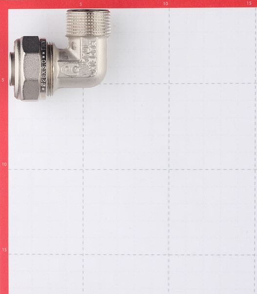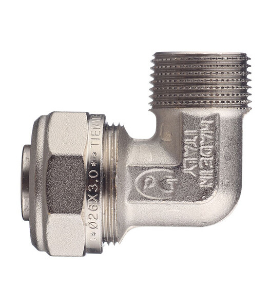 Предназначен для изменения направления металлопластиковой трубы диаметром 26 мм на 90? с переходом на резьбовое соединение 3/4" (20 мм) с наружной резьбой.