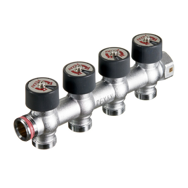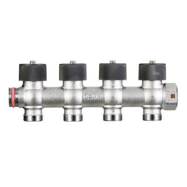 Модульные коллекторы, предназначенные для применения в системах холодного и горячего водоснабжения с трубами Rehau. Имеют высокую пропускную способность ответвлений, что позволяет эффективно применять коллекторы в системах с высоким водопотреблением санитарно – технических приборов. Коллекторы оснащены встроенными регулирующими вентилями с возможностью плавной регулировки расхода и полного перекрытия. Отводы имеют наружную резьбу G 3/4 евроконус. Регулирующие вентили оснащены маркировкой потребителей и двусторонним диском с цветовой индикацией типа систем. Подключение со стороны системы внутренняя резьба G 3/4.