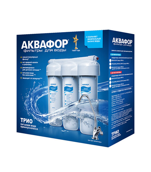 Предназначен для доочистки питьевой воды от хлора, тяжелых металлов, органических соединений и др. примесей, обладает функцией умягчения воды и препятствует образованию накипи. Состоит из модуля первичной очистки воды, удаляющего твердые примеси, умягчающего модуля, препятствущего появлению накипи, модуля глубокой очистки воды, удаляющего практически все вредные примеси, такие как хлор, свинец, бактерии, твердые частицы и модуля заключительного этапа фильтрации.