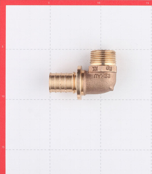 Предназначен для изменения направления трубы Rehau диаметром 25 мм на 90° с переходом на резьбовое соединение 3/4" (20 мм) с наружной резьбой. Монтируется с помощью набора специальных инструментов RAUTOOL (насадки с зеленым кольцом для Rehau Stabil, насадки с синим кольцом для Rehau Flex).