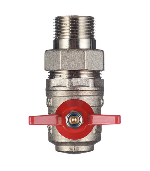 Предназначен для полного открытия или закрытия потока воды. Полнопроходной, ремонтопригодный, с увеличенным ресурсом. Соединен накидной гайкой с резьбовым полусгоном. Корпуса деталей – латунные, никелированные. Кран оснащен ручкой типа «бабочка» с утолщенной стенкой из алюминиевого сплава и эпоксидным покрытием красного цвета. Резьба присоединений – внутренняя/наружная.