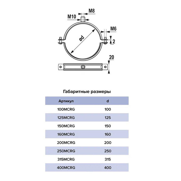 Предназначен для крепления воздуховодов диаметром 100 мм к стене или к полу. На хомуте есть универсальная гайка с внутренней резьбой М 8/10.