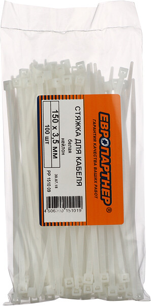 Стяжка кабельная Европартнер 150х3,5 мм нейлонoвая белая (100 шт.)
