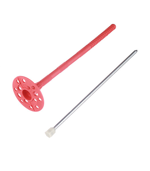 Предназначен для крепления теплоизоляционных изделий к внутренним и наружным поверхностям зданий, различного назначения, в том числе в системах вентилируемых фасадов, штукатурных фасадах, колодезной кладке. В такие основания, как тяжелый и легкий бетон, полнотелый керамический и силикатный кирпич, керамзитобетонный блок, пустотелый керамический и силикатный кирпич, блоки полнотелые из легкого бетона, ячеистый бетон (газобетон), без ограничения по высоте. За счет широкой шляпки дюбель часто называют "парашют" или тарельчатый дюбель. Конструкция широкой шляпки дюбеля плотно прижимает теплоизоляцию, отверстия позволяют утопить дюбель в клее без потери эластичности шляпки. В комплекте с дюбелем поставляется металлический оцинкованный гвоздь с термоголовкой, который имеет пластиковый колпачок, предотвращающий образование «мостика холода» и ко...