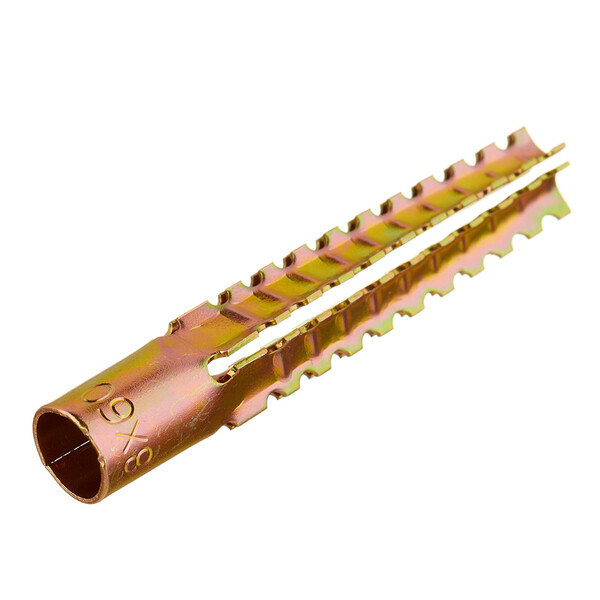 Предназначен для крепежа навесных конструкций к пористой поверхности стен. Конструкция дюбеля имеет 4-х сегментную распорную часть с внешними зубцами, благодаря которым обеспечивается высокая несущая способность в слабых видах основания. За счет острых зубцов дюбель не проворачивается в мягком материале основания при вкручивании в него крепежа. Дюбель выполнен из металла, поэтому его можно применять в пожароопасных зонах. Допускается устанавливать без предварительного сверления в газобетон низкой плотности. Применяются при установке дверей, окон, решеток, прокладке трубопроводов. Диаметр отверстия для установки – 10–12 мм