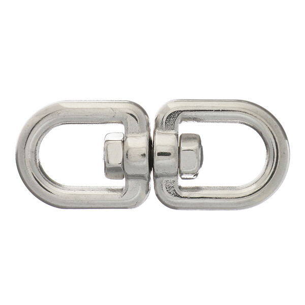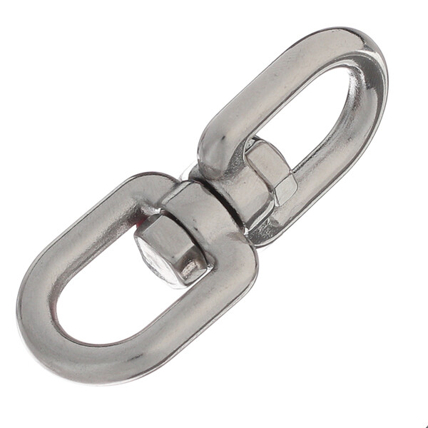 Позволяет двум присоединенным к нему такелажным элементам вращаться вокруг своей оси, что предотвращает скручивание цепей, тросов, канатов и снимает с них лишние нагрузки. Вертлюг петля-петля не имеет разборных частей, поэтому для соединения элементов необходим карабин или соединительное звено.