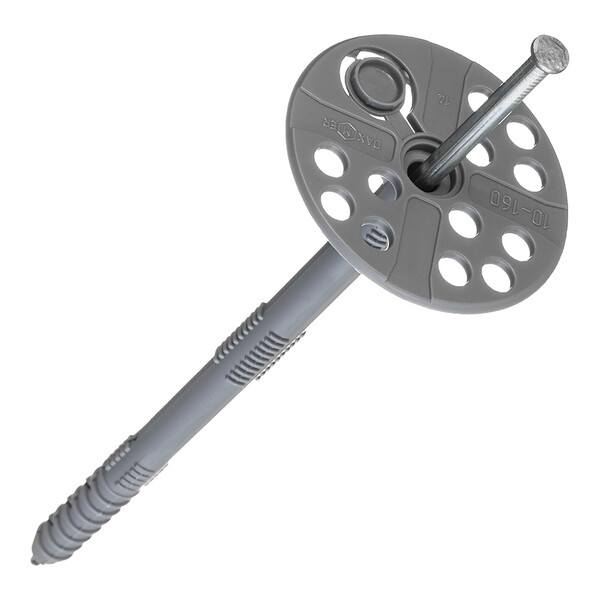 Дюбель с металлическим гвоздем Daxmer IZM предназначен для крепления к стенам различных теплоизоляционных материалов – плит из минеральной и каменной ваты, пенополистирола, пенопласта и других. Такой вид крепежа подходит для оснований из ячеистого бетона, монолитного бетона и кирпича. Устанавливается в предварительно высверленное отверстие при помощи молотка. Применяется для монтажа теплоизоляции в вентилируемых фасадах. Монтаж необходимых оснований при помощи крепежа осуществляется посредством распорного стержня, забитого в дюбель. Дюбель изготавливается из полимерных материалов, вследствие чего имеет долгий срок эффективной службы и не подвержен коррозии. Материал дюбеля – ударопрочный полипропилен, материал гвоздя – металл (IZM). Сохраняет свои свойства при низких температурах вплоть до -30°C. Продукция прошла сертификацию и им...