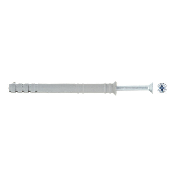 Предназначен для крепления в бетон, керамический полнотелый кирпич, ячеистый бетон, клинкерный кирпич и натуральный камень. Поставляется в комплекте со стальным гвоздеобразным шурупом (крестообразным шлицом), шлиц которого позволяет демонтировать закрепляемую деталь без нарушения внешнего вида крепления.