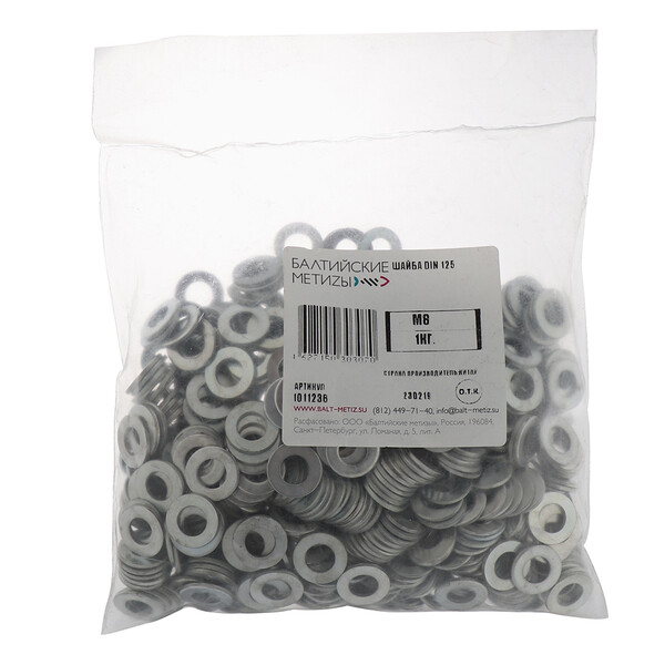 Распределяет нагрузку от гайки и головки болта на скрепляемые детали. Защищает от истирания детали в момент закручивания. Количество в упаковке (1 кг) – 650 шт.