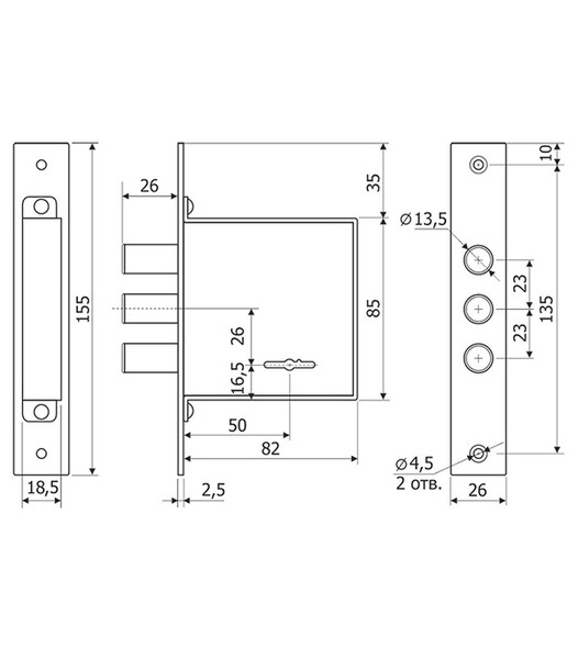Предназначен для запирания металлических и деревянных дверей, металлических шкафов и сейфов.