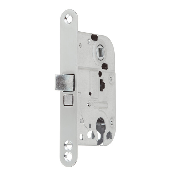 Предназначен для запирания дверей. Для изменения сторонности замка, вытягивается защелка и ставится в необходимое положение. – Для правых/левых дверей. – Для внутренних помещений.
