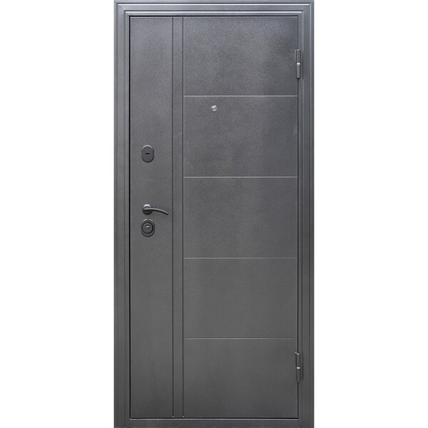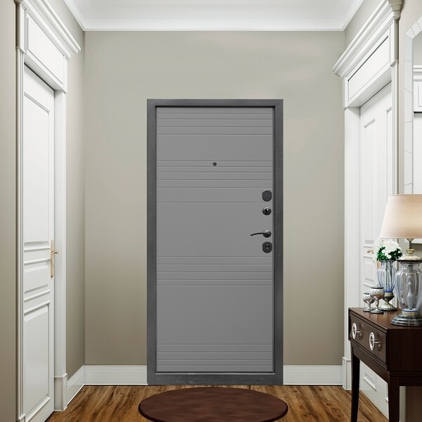 Предназначена для установки в жилых и общественных зданиях в качестве входной двери внутри помещения. Полотно изготовлено из стали. С внутренней стороны облицовано фрезерованной МДФ-панелью толщиной 8 мм. Стальной лист 1 мм с атмосферостойким порошковым покрытием цвета "антик серебро"; панель МДФ, толщиной 8 мм в цвете "светло-серый"; наполнение базальтовая плита.