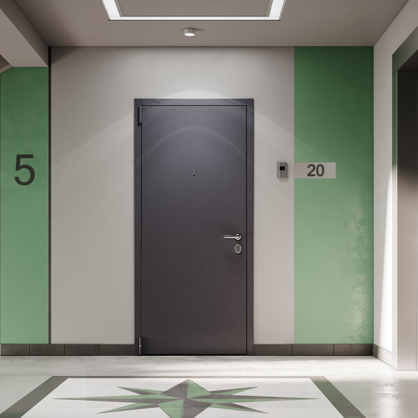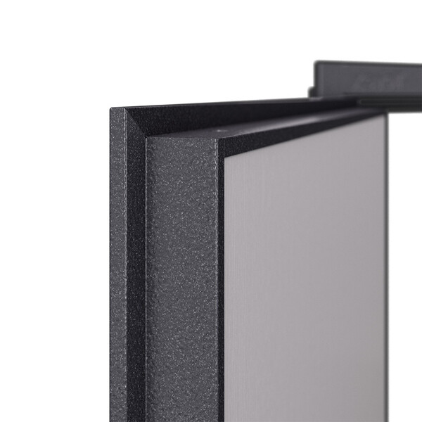 Предназначена для установки в жилых и общественных зданиях в качестве входной двери внутри помещения. Полотно изготовлено из стали. Стальной лист 1 мм с атмосферостойким порошковым покрытием цвета "Темно-серый букле графит", панель МДФ в цвете "Дуб белый матовый". Наполнение – пенополистирол.