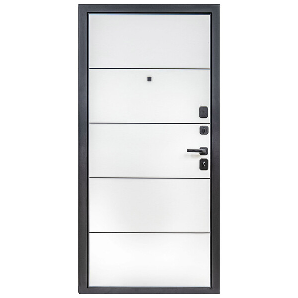 Дверной стальной однопольный блок с открыванием наружу. Дверь предназначена для установки в жилых и общественных зданиях в качестве входной двери внутри помещения. Цельногнутая конструкция полотна и закрытый цельнокатаный профиль коробки. Стальной лист с атмосферостойким порошковым покрытием цвет "Лунный камень" декорированный панелью МДФ 10 мм. С внутренней стороны облицовано царговой МДФ-панелью толщиной 22 мм, цвет "Snow Veralinga". Три горизонтальных усиливающих омега-профиля (ребра) создают единую монолитную жесткость и прочность конструкции. Две наружные петли на опорных подшипниках. Два замка 4-го (высшего) класса взломостойкости. Цилиндровый механизм с вариантом исполнения «ключ-шток», взаимозаменяемый аналогичным вариантом. Встроенные в дверную коробку 3 гильзы из ABS-пластика обеспечивают тихую работу ригелей. Дверь крепится ан...