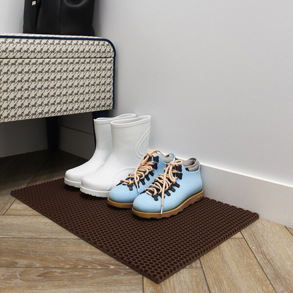 Коврик держит форму, не имеет запаха, обладает высокой износостойкостью. Благодаря специальным ячейкам удерживает влагу, песок. Материал легко поддается резке строительным ножом.
