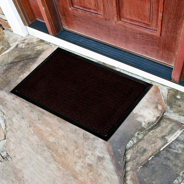 Коврик придверный влаговпитывающий, основание – переработанная резина, лицевая сторона – полиэстер.