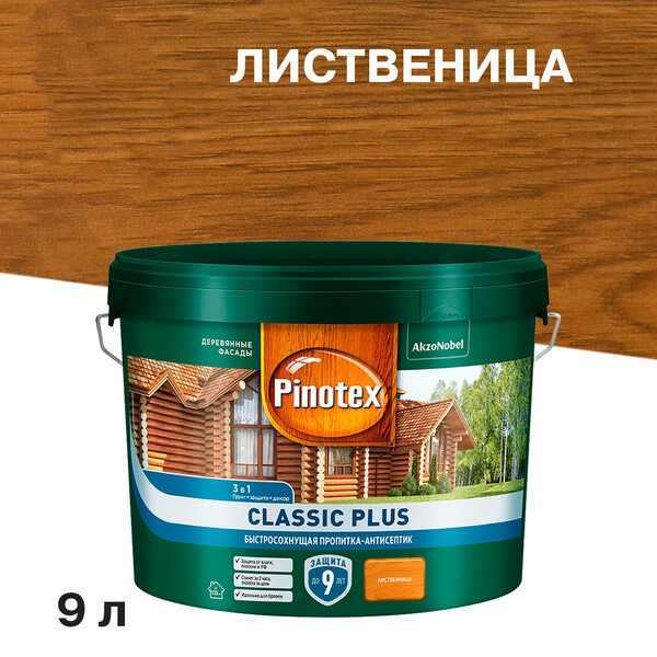 Антисептик Pinotex Classic Plus 3 в 1 декоративный для дерева лиственница 9 л