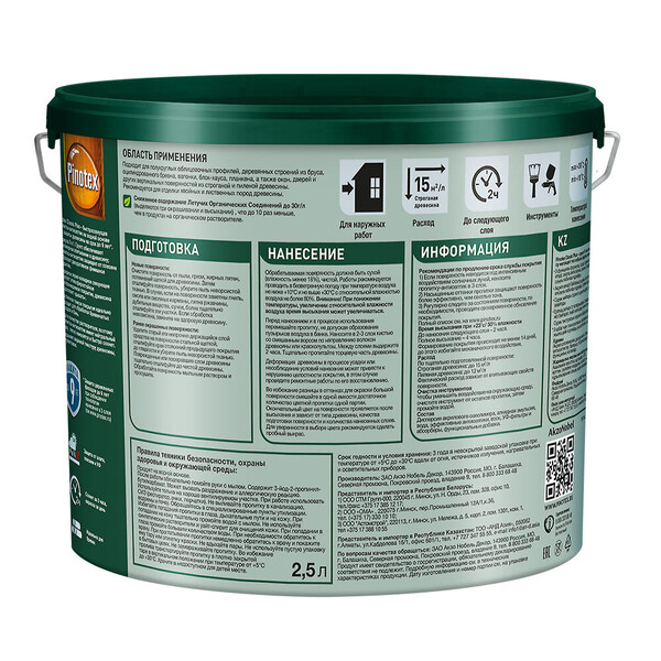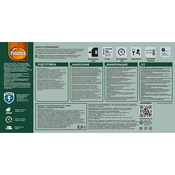 Быстросохнущая пропитка-антисептик на гибридной основе для защиты древесины до 9 лет. Формула 3в1. Грунт обеспечивает равномерное впитывание в древесину; пропитка-антисептик защищает от плесени и образует декоративное финишное покрытие. Гибридное акрил-алкидное связующее образует атмосферостойкое паропроницаемое покрытие, древесина продолжает «дышать». Эластичное тонкое покрытие идеально подходит для обработки бревенчатых фасадов и бань. Вода в качестве растворителя, поэтому пропитка-антисептик имеет нейтральный запах, легко наносится и быстро сохнет. Сохраняет видимой текстуру древесины, полуматовая. Чем более насыщенный цвет пропитки, тем более выражены защитные свойства. Для наружных работ. Pinotex Classic Plus идеально подходит для полукруглых облицовочных профилей , деревянных строений из бруса, оцилиндрованного бревна, вагонки, б...