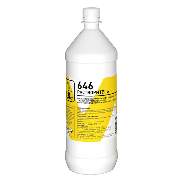 Предназначен для разбавления акриловых индустриальных, алкидных эмалей, нитроэмалей, лаков, а также для очистки оборудования и инструмента после работ.