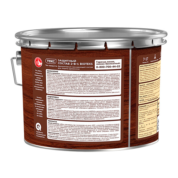 | Расход | 12-17 м2 /л по строганой и бревенчатой поверхности, 7 - 9 м2 /л по пилёной поверхности древесины |