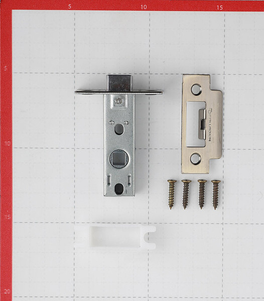 Защелка межкомнатная серии 100. Механизм оснащен металлическим язычком, обеспечивающим максимальный срок службы изделия. Гарантированное количество циклов безотказной работы узлов защелки более 200000. Качество гальванического покрытия подтверждено тестом на устойчивость в камере соляного тумана – более 96 часов.