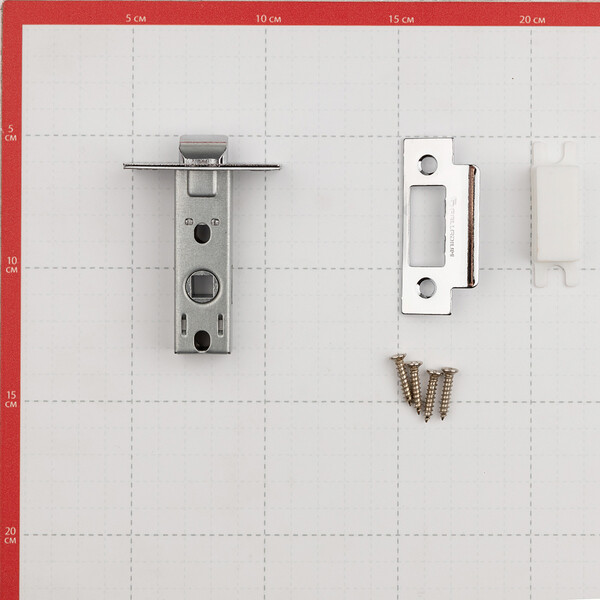 Защелка межкомнатная серии 100. Механизм оснащен металлическим язычком, обеспечивающим максимальный срок службы изделия. Гарантированное количество циклов безотказной работы узлов защелки более 200000. Качество гальванического покрытия подтверждено тестом на устойчивость в камере соляного тумана – более 96 часов.