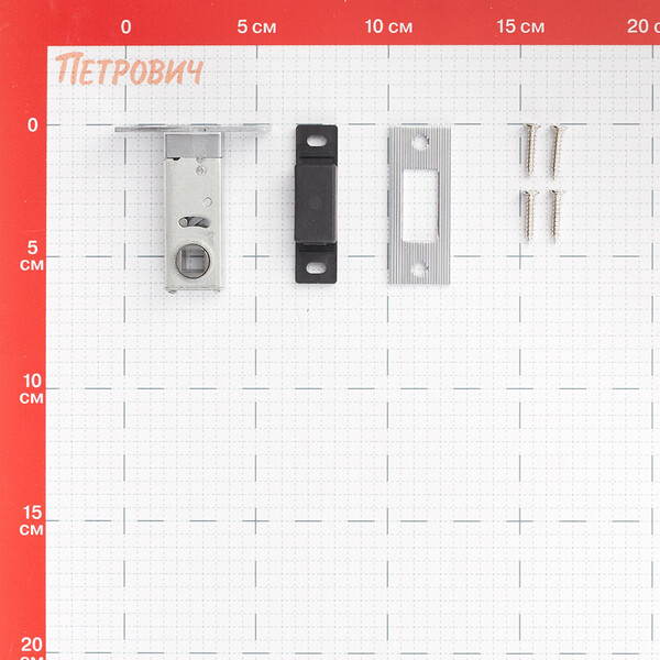 Защелка межкомнатная серии 100. Механизм оснащен магнитным металлическим язычком, обеспечивающим максимальный срок службы изделия. Гарантированное количество циклов безотказной работы узлов защелки более 200000. Качество гальванического покрытия подтверждено тестом на устойчивость в камере соляного тумана – более 96 часов.