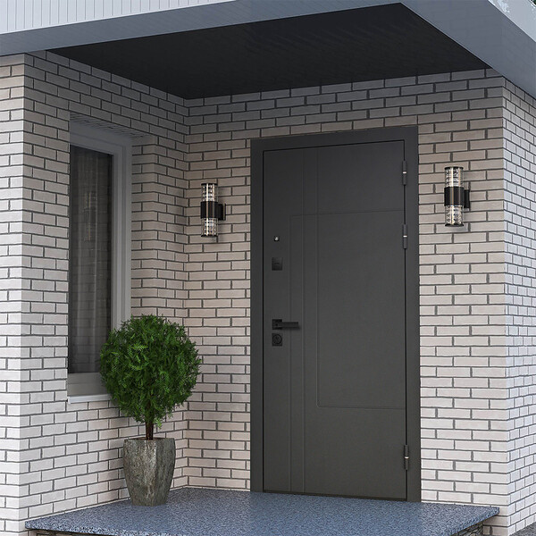 Предназначена для установки в жилых и общественных зданиях в качестве входной двери внутри помещения. Полотно изготовлено из стали. Внешнее покрытие – фрезеровка по металлу, покрытие муар RAL 7024 без блесток. С внутренней стороны облицовано фрезерованной МДФ-панелью толщиной 10 мм, цвет "Эмалит белый", вставка – черное стекло лакобель.