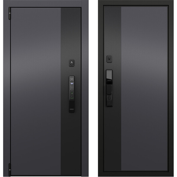 Предназначена для установки в жилых и общественных зданиях в качестве входной двери внутри помещения. Полотно изготовлено из стали. Стальной лист 1,4 мм с атмосферостойким порошковым покрытием цвета "Темно-серый букле графит"; с внешней отделкой МДФ в цвете "Оскуро + Черная шагрень" с декоративной отделкой; с внутренней стороны МДФ в цвете "Оскуро + Черная шагрень" с декоративной отделкой. Наполнение – пенополистирол+слой вибро – звукоизоляционного материала SGM. Дверь подразумевает установку электронного замка.