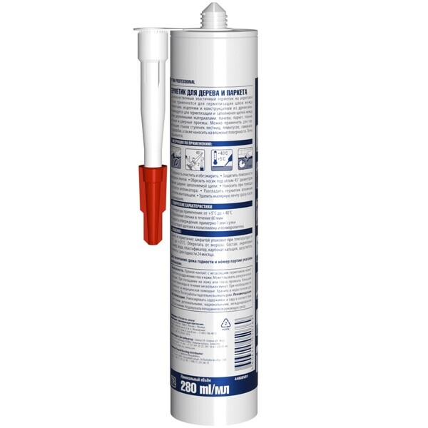 Акриловый эластичный герметик, разработанный специально для герметизации и затирки стыков при укладке паркета, ламината и пробковых покрытий. После отверждения его можно шлифовать и красить. Для внутренних работ.