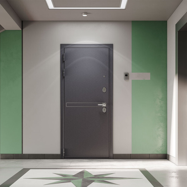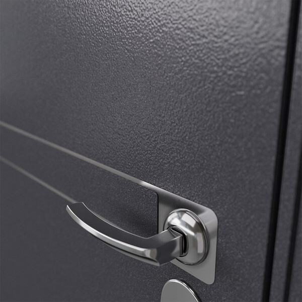 Предназначена для установки в жилых и общественных зданиях в качестве входной двери внутри помещения. Стальная дверь используется для установки в квартиру и другое помещение. Дверь обладает высокой устойчивостью к повреждению, приятный эстетичный вид. Порошково-полимерное покрытие антивандальное, имеет глянцево-матовую текстуру и современный оттенок «Букле графит». На внутренней стороне облицовано МДФ-панелью, цвет "Ларче Шоколад". Заполнение полотна-минеральная плита в сочетании с дополнительным изоляционным слоем обеспечивают уровень защиты от посторонних шумов.